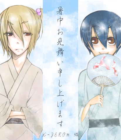 もうそれは置いといて、とっさの思いつきで暑中見舞いを描いてみました。